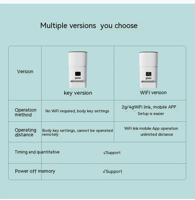• Automatic Timed Feeding: Set specific meal times to ensure your cat is fed on time, even when you're away.